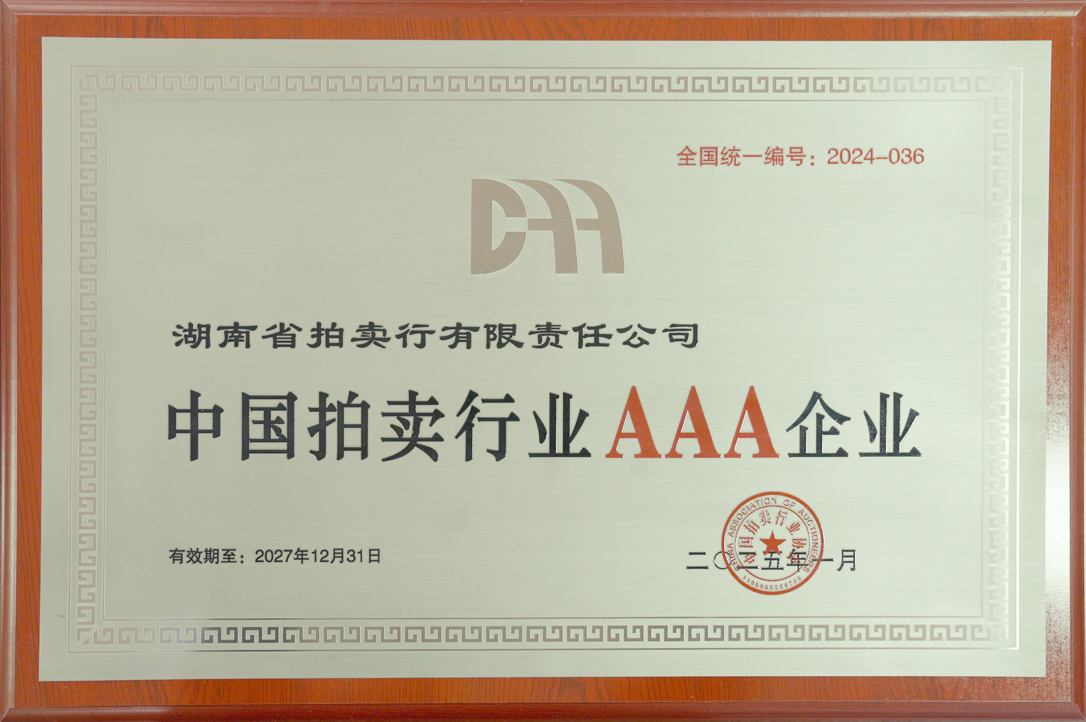 近日,湖南省拍卖行有限责任公司(以下简称“湖南拍卖”)荣获了中国拍卖行业aaa级资质认证,该资质的获得不仅是对湖南拍卖长期以来卓越经营和诚信服务的认可,也是对其在拍卖领域所作出的显著贡献的肯定。标志着湖南拍卖在规范化、专业化、标准化建设方面迈上了新的台阶。
