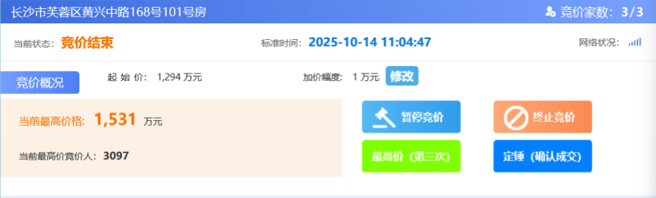 2025年10月14日,由湖南省拍卖行有限责任公司(以下简称“湖南拍卖”)组织的五一广场优质门面资产公开网络拍卖落下帷幕。此次拍卖标的为长沙市芙蓉区黄兴中路168号101号门面,经过近百轮的激烈竞价,最终溢价237万元,以1531万元顺利成交。